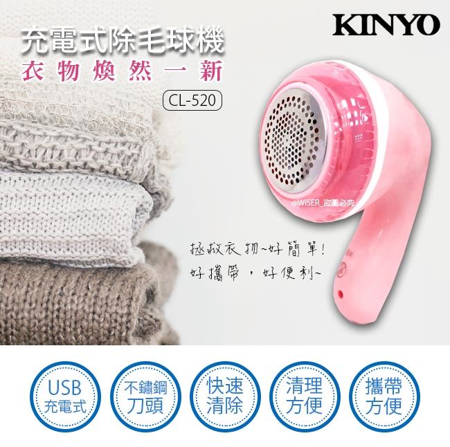 【KINYO】大三刀USB充式除毛球(CL-520)合各毛料、毛衣、具、棉品,常使用我的衣物永保持乾如新。