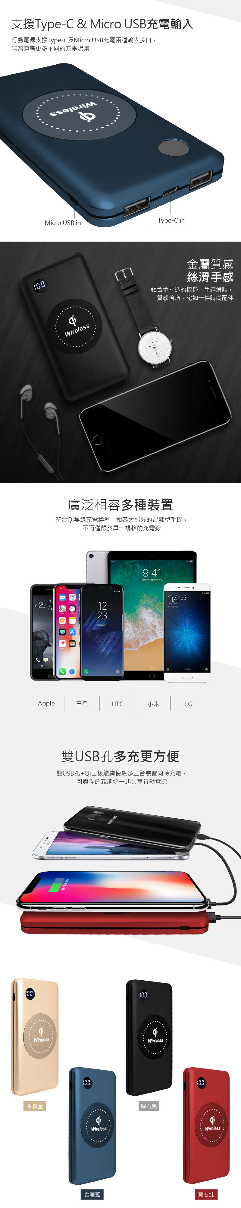 ★支援充、支援多手 ★ 10000型大池 ★ USB出孔+Qi面板,可支援三台置