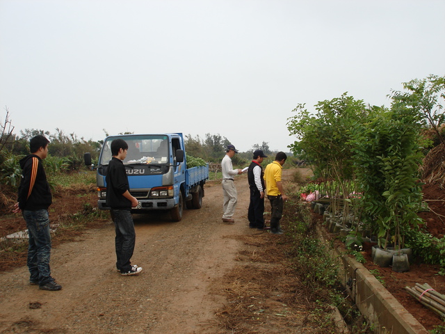 之,直接我小小的,一共有十六株紫檀,十株青,十一株台山,移植一株阿勃勒,一株大桃花心木,大伙由施工人用怪手,小一的由我自己手,光是小的植栽、木、水就搞得我肩膀要了臼。