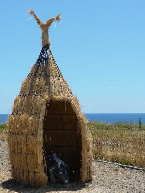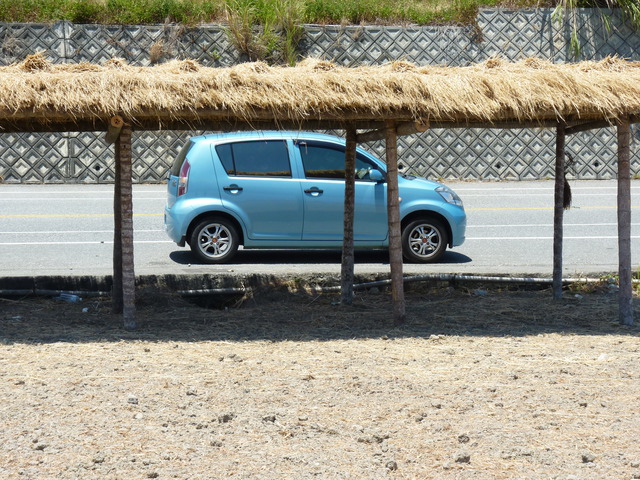 我海花公路北上想回花,路旁看到了牛,是稻草牛,有,有稻草人,稻草搭的亭子,於是停了。小朋友也可以玩很久。