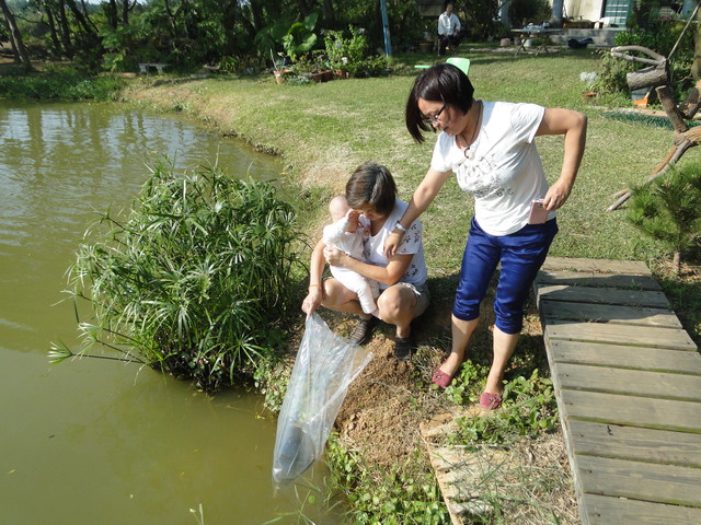 於是,大人小孩在白石草坪上席地而坐,砂子和好友提了了灌了的大塑袋,到入水口小木,小心翼翼把苗放了湖。