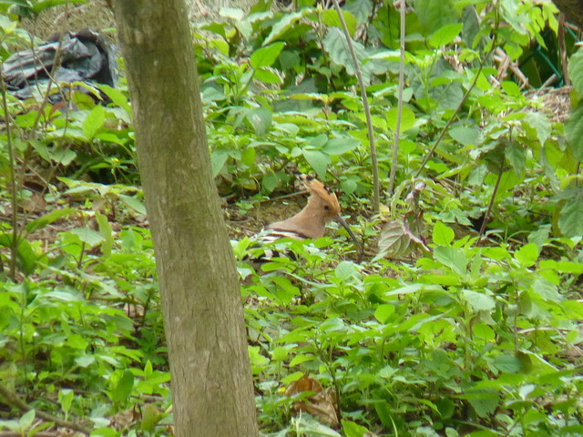 什呢?在欣,羽毛上有老虎斑,是虎?但斑是整平行的,和虎的老虎斑不同,再一看,上往後梳的冠羽:哇!不是戴是什?