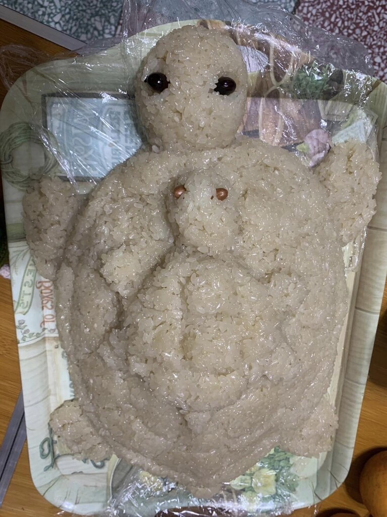 今年小包勇敢的答做,阿把米糕蒸好,一倒方她立刻持起匙大刀斧塑型,阿在旁多少下指棋 咦?尾巴的材料不了?有一呢? 阿蓉在一旁偷偷笑,偷偷吃,偷偷叫好 也甜度中,Q可口!怎知道呢?我也偷偷到了 今年完成的是大背小,三台斤的糯米蒸出的用料,包加勾出三可的毛一起出埸拜 160年的地方大,上著一大堆部大名,人有,有唱,有舞台活,有八音,有信徒前,手做一共只剩五,印模有到位主人 然如此,我的是一年一年做下去吧,小包都出接棒的架了