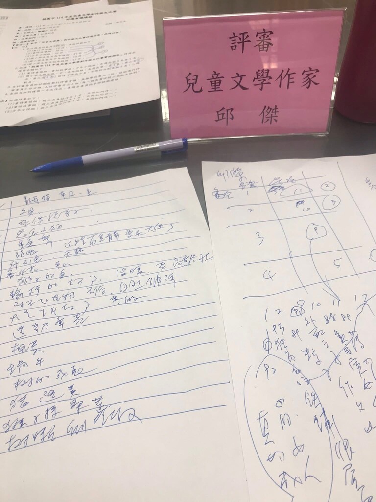 114年桃市童文今天完成 今年我的是童和中年生 依循往例九位分成三,都是各跨二,稍有改的是主位早已替我完成分,作品也早就在我座位前,一坐下就可以直接入工作 史悠久,了市、多少位教育局局,始棒棒承,成桃可的文化特色及,早期位得者,如今在全文熠熠光 教育局的持真是可佩可感 今年砂子全程陪我,心情之大好