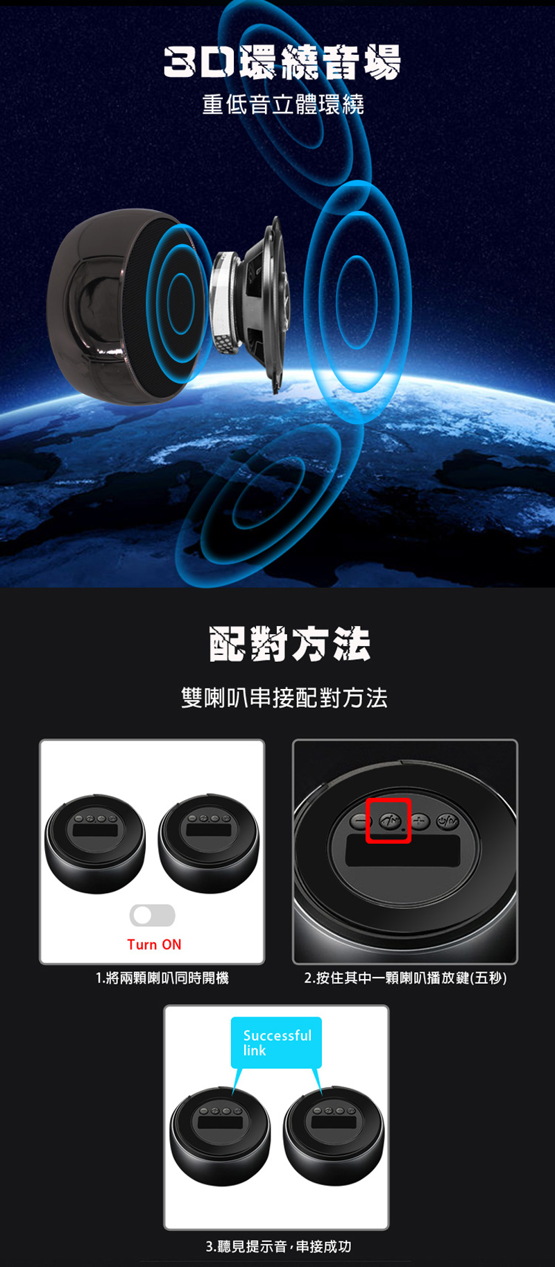 ★ 外超感不材 ★ 一接 ★ 3D重低音音效 ★ 牙快速接 ★ 播模式/芽模式/TF卡