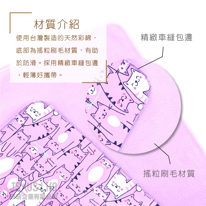 ◎台造 天然彩棉 ◎排水性佳 不黏 ◎材柔 感舒◎柔佳收方便