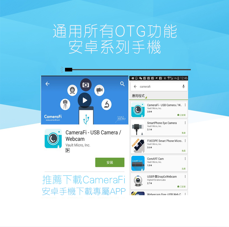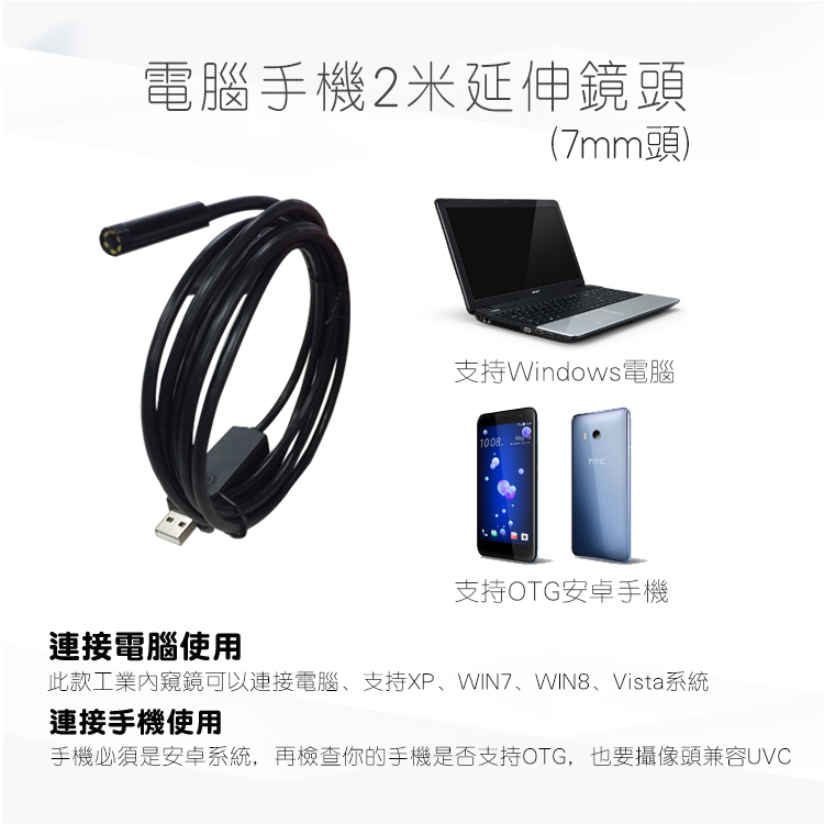 (注意:手需支援有OTG功能及UVC /android 4.0以上)