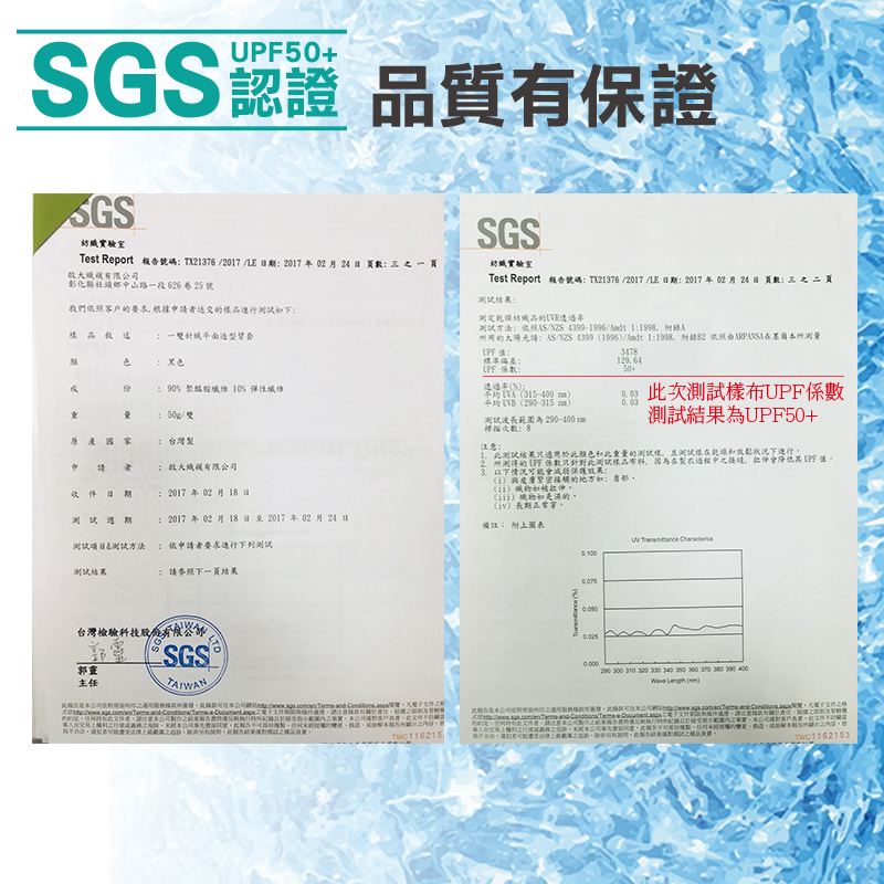 ●SGS,一成型接、防、爽、抗UV!