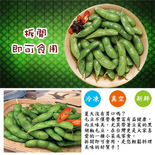 金牌毛豆只要45元起!!爽口甜毛豆,薄入味,豆粒清脆,拌入辛香黑胡椒,天然清甜,涮嘴美味!