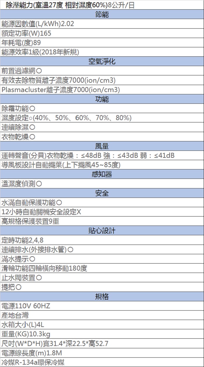 最近在路上看很多民都很推【SHARP夏普】8.5L HEPA空清除DW-H8HT-W