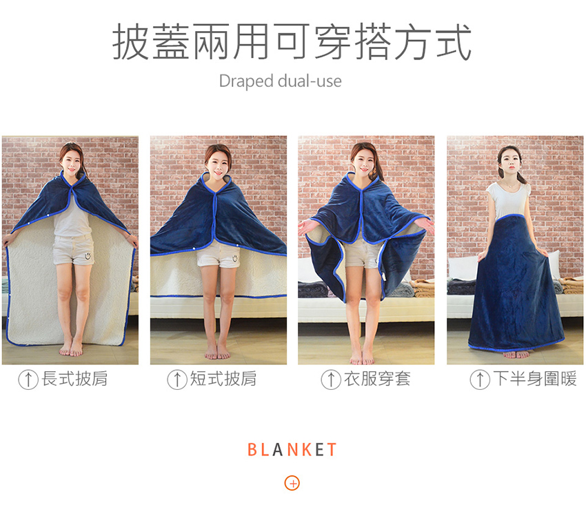 商品息特多功能用途披肩毯,扣式方便活,多穿搭方式心所欲,面材:法x羊羔的舒柔呵,保暖又尚。
