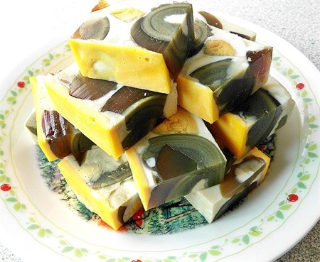 多人皮蛋蛋倒入蛋液中混合..在此不建!先排好再倒入蛋液..三色蛋的色才明,切割面的皮蛋蛋才整明好看~