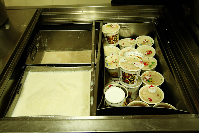 利早的米、豆都是用碗的,外地人可能不太用匙喝豆,不小三都叫一碗,替大家品一下口味。豆的和茶、奶茶一只要12 元,米和豆一碗15元。喝起都不太,很普通的味道,有添加物的feel不,豆的料比少,主要是以喝的方式主,和都市跟粥 一的豆不太一。
