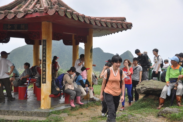 高730公尺,也半屏山,山有三角,知名度不高,所以少人注意座山,但和草山、光寮山成三鼎立之。山只有立梯形像旗座的水泥柱,但景野佳,在山上,北方金瓜石耳茶山附近景宛如小盆景