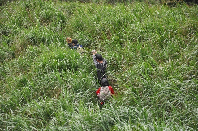 半平山往苦命的行程乎都是走在的比人高的芒草堆,像似在走迷般.一方面怕跟不上前面的伍,一方面又怕被芒草割,因路不明朗果有一段路走方向,好在警叫大家不要再往前走,在往回走於找到分叉路的布,危於解除,大家才口露出笑容.