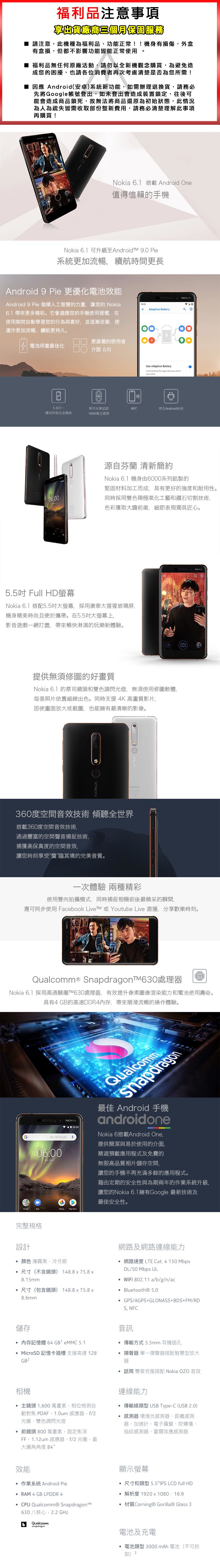【NOKIA】 6.1 (4G/64GB) 5.5 八核心智慧手(福利品) 是在下面平台的