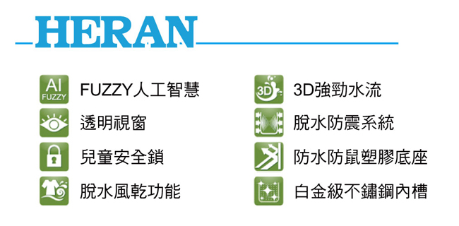 【HERAN禾】10.5公斤全自洗衣 HWM-1031 ,推,箱,CP值,,,便宜,惠,介,排行,精,特,周年,,限