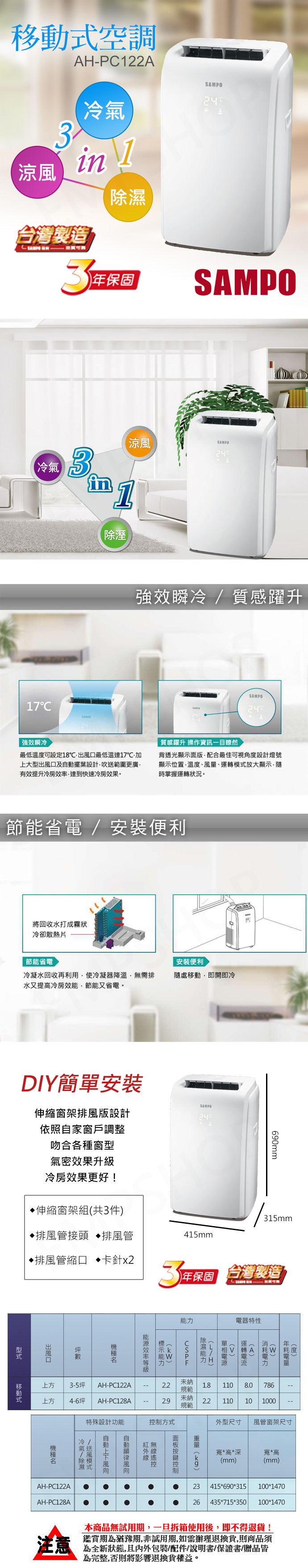 【SAMPO】三合一移式空 AH-PC122A ,推,箱,CP值,,,便宜,惠,介,排行,精,特,周年,,限
