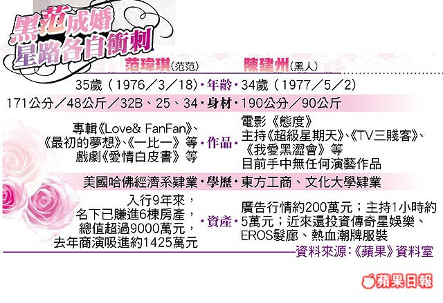 黑人建州本六在台北迎娶范琪,原本收入比范范少的黑人,最近目《青春全集合》悄悄收,他每月收入再30元新台(人民6.8元),他:“感激范范不我得比她少,娶到她就是子最好的事。”