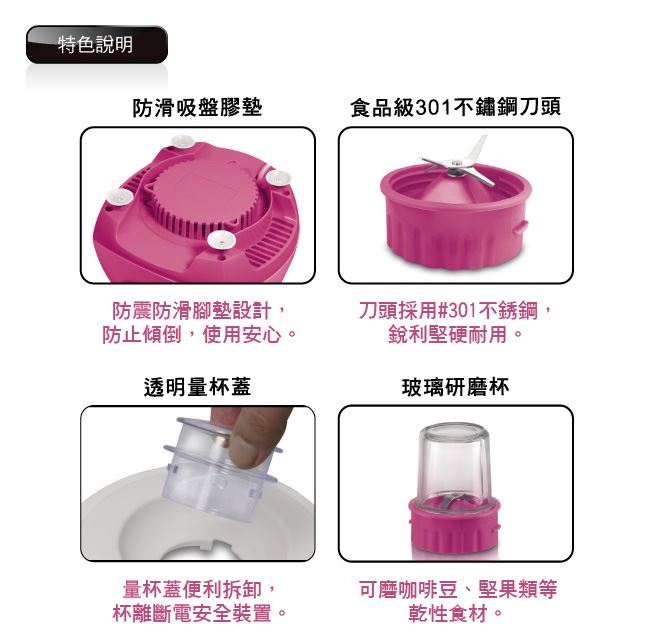 ■附研磨杯:可磨咖啡豆、果等乾性食材。