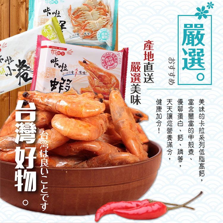 台百大伴手!!口感酥脆不油,自大海的美味~超人卡拉系列四款X六口味澎派任!