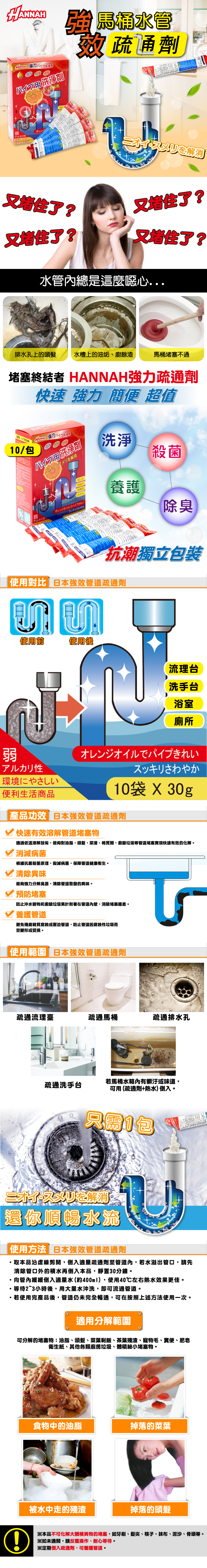 日本 HANNAH 效桶水管疏通(10包/盒) ,推,箱,CP值,,,便宜,惠,介,排行,精,特,周年,,限