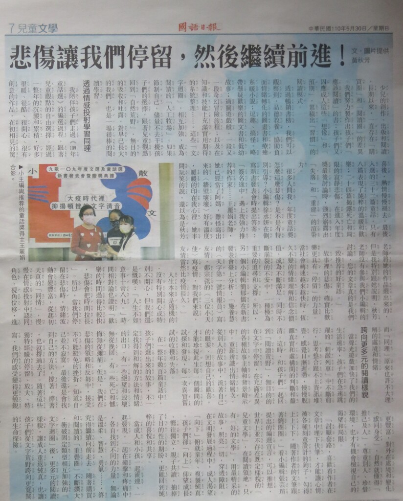 陪伴孩子走《109年童》的程,跟著童的自由。一整年的沉和累,好多很暖、很酷、很心、很有意的作品,在初相的喜後,情慢慢褪去,最後入32篇童,只有8篇表了粹的暖和;24篇揭露死亡和限的寂悲,在入年度最後,烈露出「失落」和「重建」的渲染力。