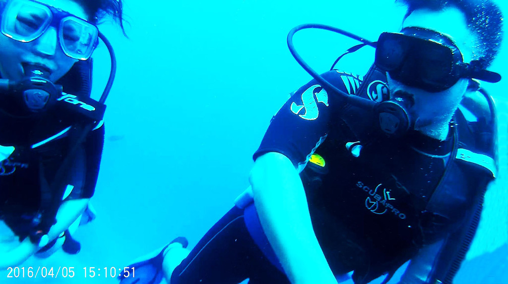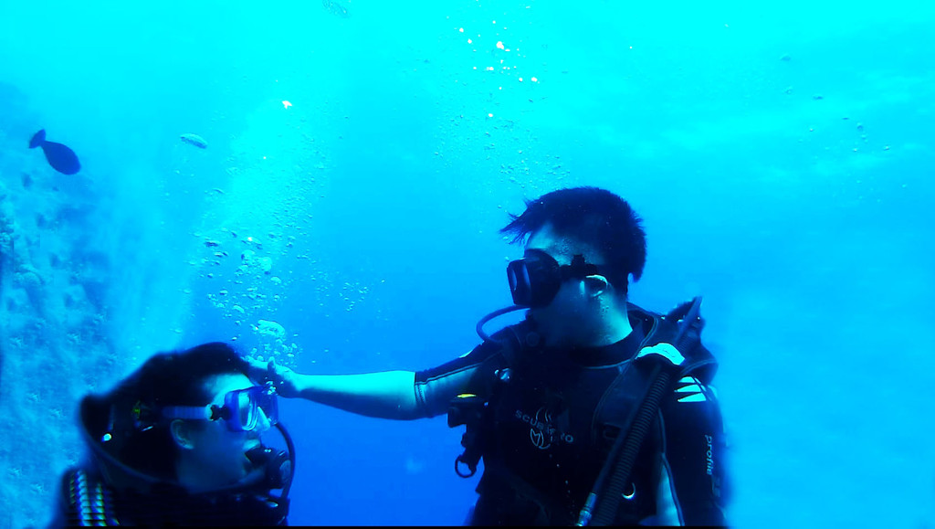 是我得的合照。不知是我了太多防是面罩太大了,面罩是移位置或是入水,不停的清,但海洋在是很美很美。游一小洞中,教叫我自的欣那七色的珊瑚,我好像身在花筒中。但我的面罩又不,我在好米以下的海中到,不得已一定要上水..再下水的候耳朵痛了,不停equalise也不成功,本想放算了,但教持要我equalise,於成功了!我又海中生物同在,在海中只到自己的呼吸,看到的一切都是的,感很安定。教指出不的海洋生物,看之下得生。