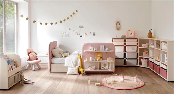 除使用保毒E0板材外,在配色上也符合童趣造型搭配,
