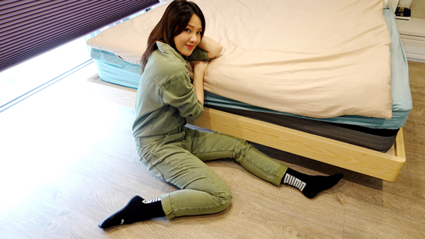床的渥木「日落床架」,看就像空一,雨柔走路不看路,也不心趾撞到,可以伸到床底下做操。(渥木/提供)