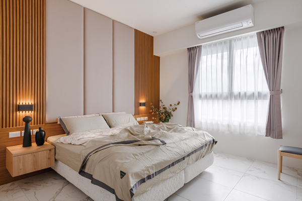 主房延客的木格元素,床旁的木格米色布延伸至天花板,造出如店般的大器氛,藕色窗交出雅的私域。心房光置在的男屋主床那,暗藏玄的有梳台,看似子的白色方框可掀式,打便是藏化,放置女主人的日用品小物,木梳台另附大小不等的抽,收空有效用。天立地的系衣用和房一致的木白色,粹的,彰掌握空色系的能力,善用德系俱整更精彩。