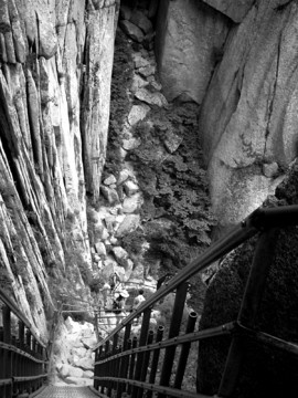 最後的一段路程,都是架在山壁的梯成,走在上面然不至於晃晃,但也也人.途中到一小女孩在半途怎也