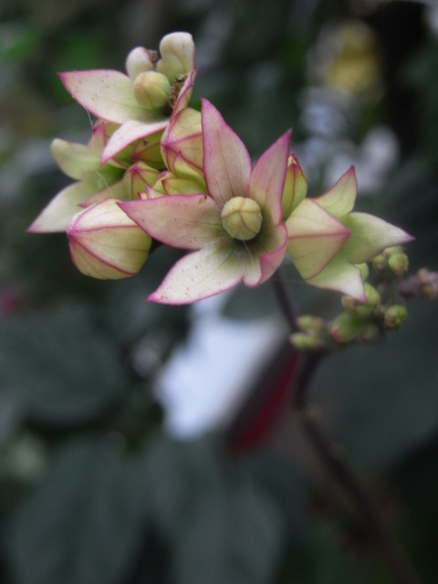 聚花序生,小花密生,花序公分,花紫色,卵形花瓣,5瓣,色,花冠具有冠筒,冠筒前端花瓣完全平展,花冠2.5公分;4花,短略不同,直伸出花冠外甚,雄蕊花朵的2倍。