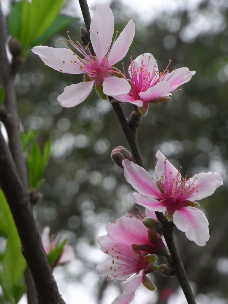 上的矮灌木正著花,玲可。〈友指出植物是扁桃〉