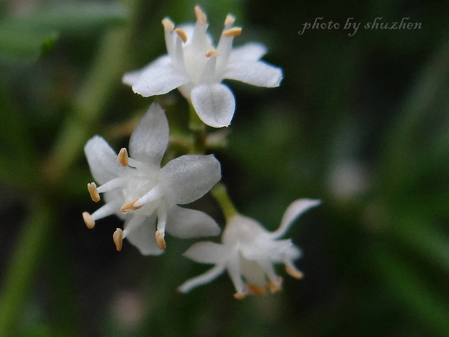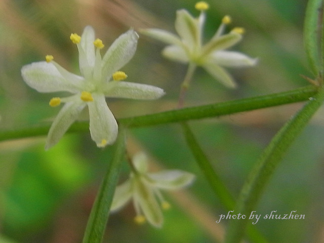 花: 花序,腋生,小花朵簇生,呈淡色至白色,具香,花瓣 6 枚,雄蕊 6 枚,花色,花柱 。花期:春末~秋季。