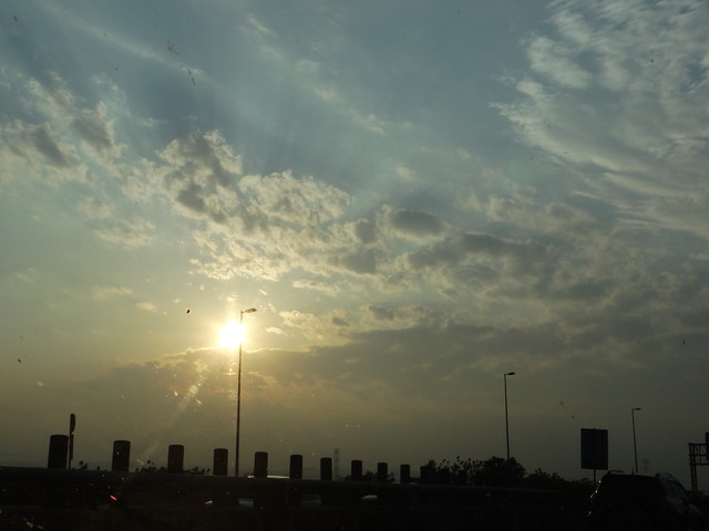 回程某一路段因施工而速慢,先生有些不耐,我喜有夕景色可想。