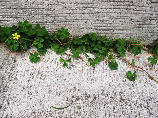 : 生基部,子色,三出掌倒心型,呈平滑,且互生或是生,全缺刻。根生,柄又又, 15~24 公分,片由三片小所成,倒心形, 3.5~5 公分, 3.5~5.3 公分,先端凹缺;偶而有突的四片小,俗幸草。酢草的子有睡眠,在夜合下垂,如果白天雨、太不露,睡眠持行。