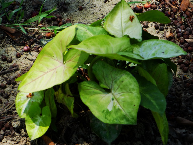 : 有柄,片箭形,和芋很相似。色或有白斑,表面光滑有性光。肉常呈白、相,肉的色有墨、、、。子在幼年期和成熟期的形不大相同。