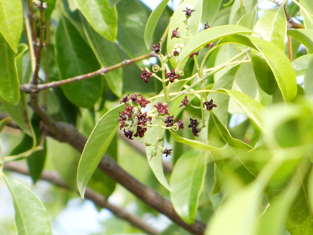 型:常小木,高度8至15米;卵形子生;花初色,後血色。