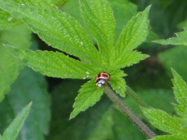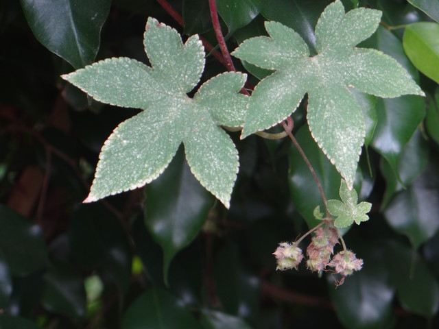 : 生,有柄, 5~20 公分;近掌五角形,直7~10 公分,掌 5 深裂,稀 3 或 7 裂,裂片卵形或卵披形,先端急尖或尖,基部心形,有粗,面生粗糙毛,下面有色小油。面及上均有小逆刺,易刮肌,是蝶的食草。