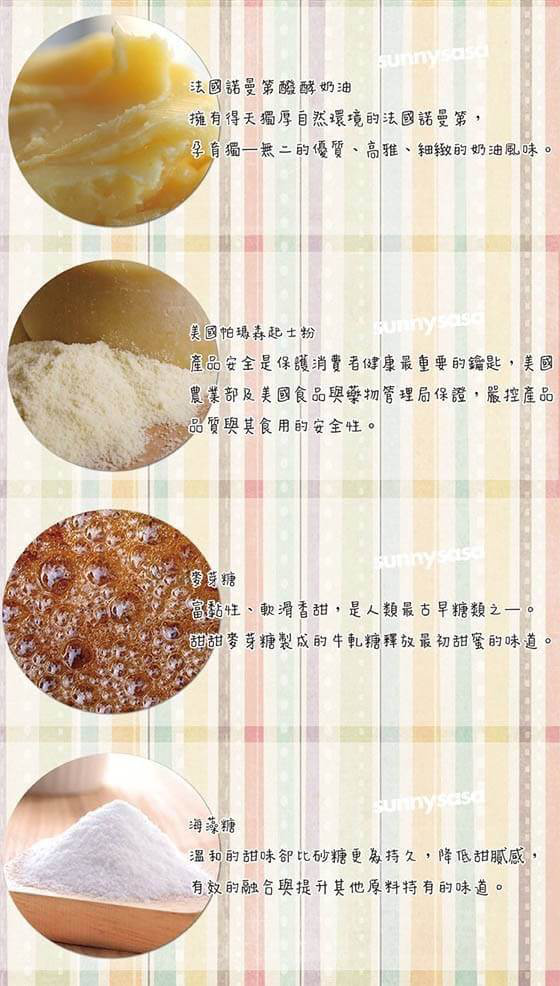 ● 澳洲夏威夷豆(火山豆),使用海藻糖+芽糖,法曼地酵奶油、安佳奶粉,自然乳香香精