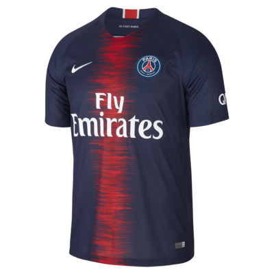 2018/19 Paris Saint-Germain Stadium Home 男款足球球衣採用透氣排汗布料,場上場下均能常保涼爽舒適。