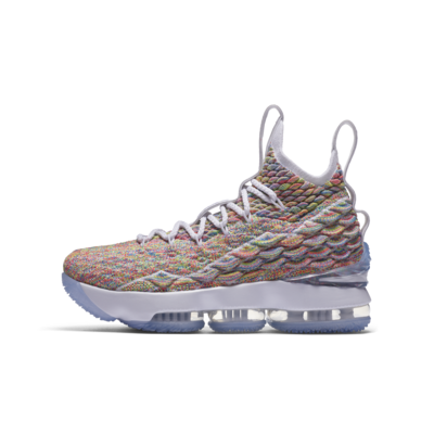 LeBron 15 大童籃球鞋以新型態的 Flyknit 強力整合緩震機能設計,是專為如 LeBron 般具有超強爆發力球員的需求所打造。