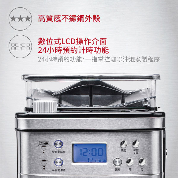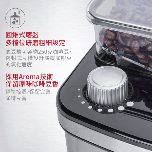 高感不外,位式LCD操作介面,用Aroma技,保留原味咖啡豆香!