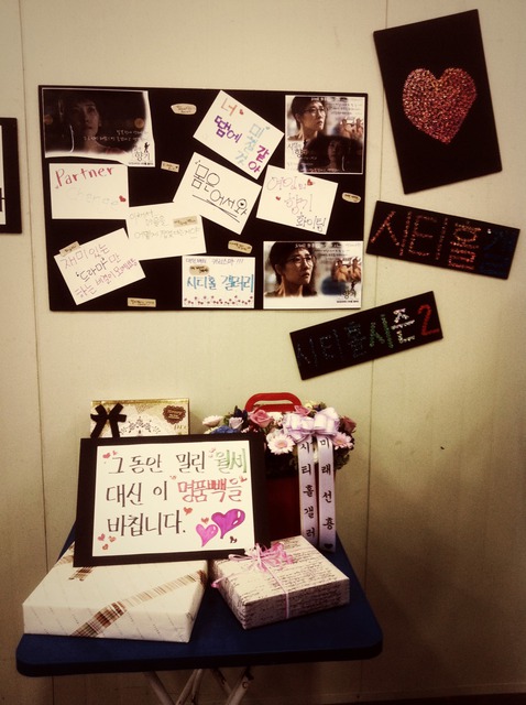 基俊兄的影迷送上的零食。送到了拍地,法吃晚餐。候得正好。在跟蔡生一同拍中,心情很好!<女人的香>到最後也是不同的。<翻BY Karen>