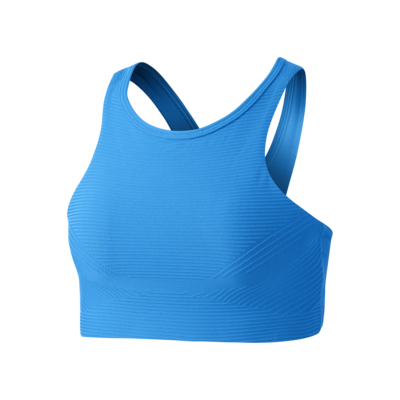 NikeLab 女款運動內衣採用柔軟平織內裡與編織材質精工打造,加高領口與緊身剪裁設計,貼合身形曲線。