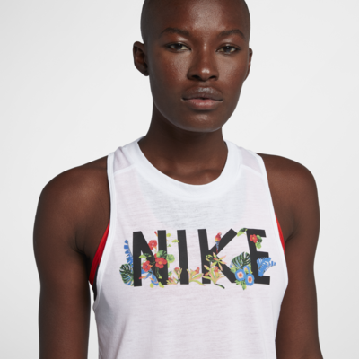 Nike Miler 女款跑步背心,踏上花樣奔跑之旅。花布 Nike 圖案增添多彩能量,排汗材質可常保涼爽,舒適邁向下一哩路。