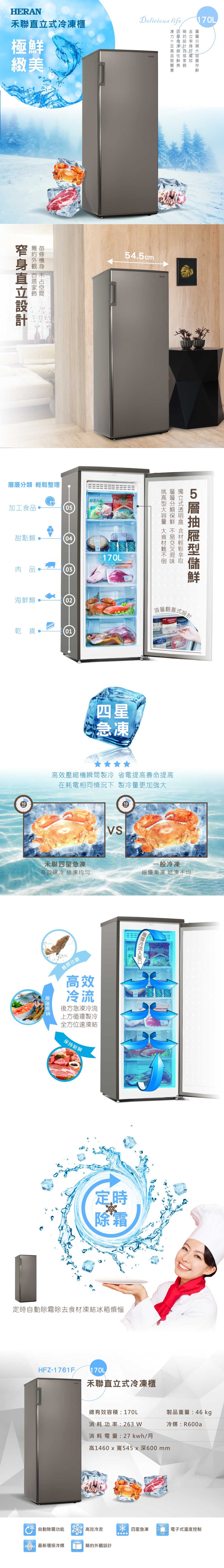 多方比後,【HERAN 禾】170L 自除霜直立式冷HFZ-1761F居然曾造成潮,在是居家必好物