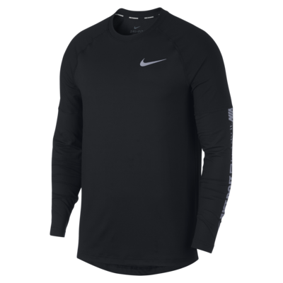 Nike Element 男款長袖跑步上衣,保暖表現優異,令人刮目相看。手臂處飾有反光圖案,以六種語言書寫 Just Do It 字樣。排汗材質搭配背面網布,可在跑步過程體溫漸升時,維持舒適涼快。