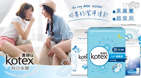 【靠得住】白体味紫生棉-日用超薄23cm(18片x6包)+夜用超薄28cm(14片x2包)/